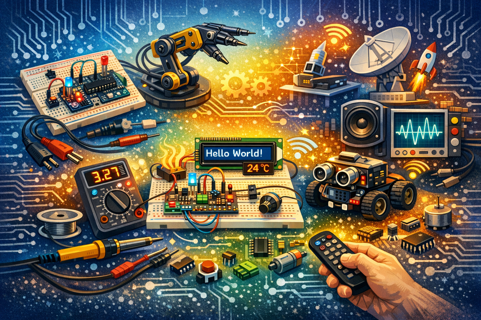 Hobby electronics involves exploring, building, and experimenting with electronic circuits for fun, learning, and creativity. It is a hands-on hobby that blends curiosity with practical skills, allowing anyone—from complete beginners to experienced engineers—to design and build devices that sense, control, and interact with the world around them.